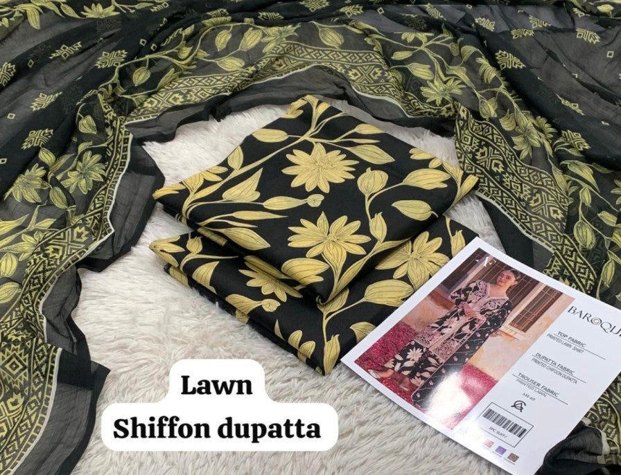 BAROQUE Printed without patched 3 Piece Unstitched Suit BR-08