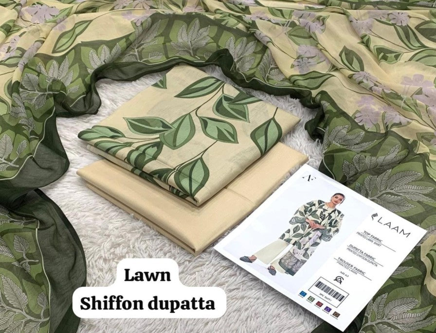LAAM Printed without patched 3 Piece Unstitched Suit BR-06
