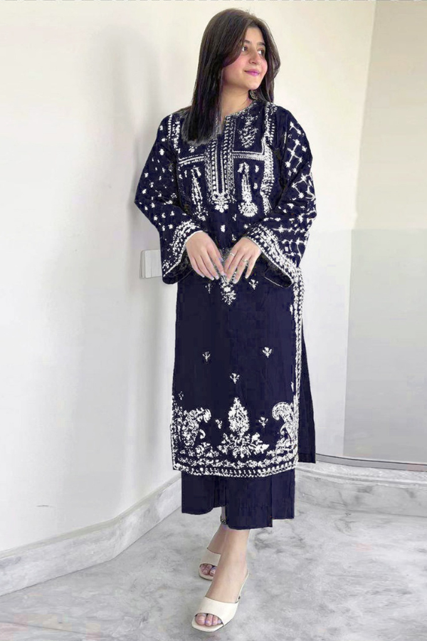TAWAKAL-DHANAK EMB-2 PIECE-NEAVY BLUE