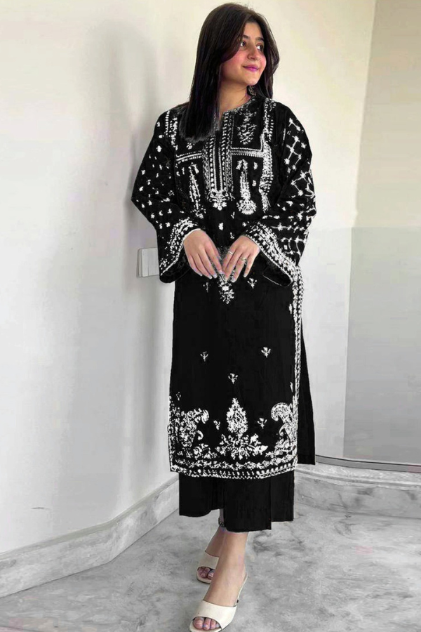 URGE-DHANAK EMB-2 PIECE-BLACK