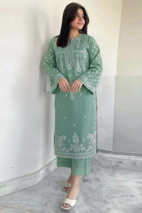 TAWAKAL-DHANAK EMB-2 PIECE-LIGHT GREEN