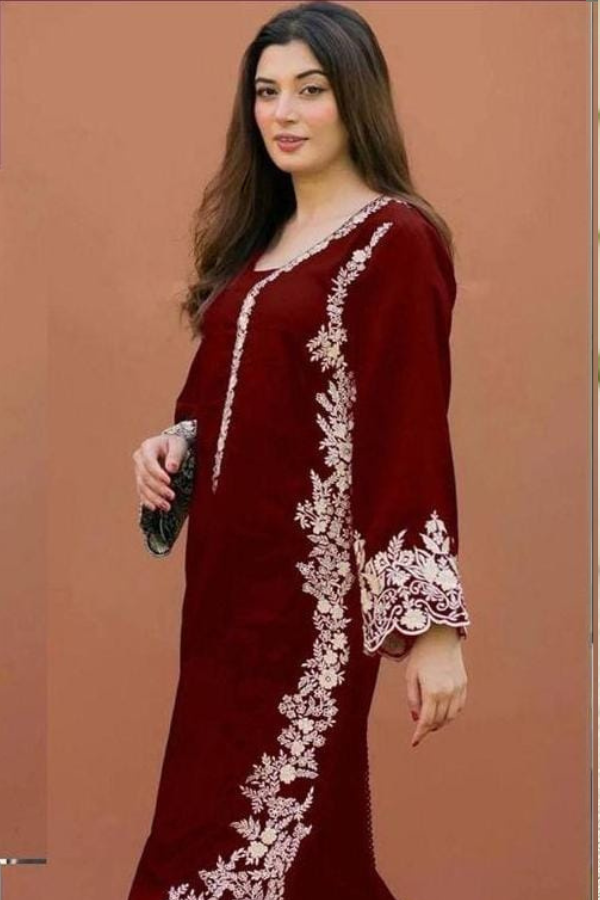 ASLING-DHANAK EMB UNSTITCHED -2 PIECE-MEHROON